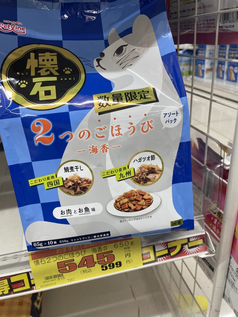 ダイレックスにいつものメディファスアドバンスを買いに行ったら、懐石シリーズの数量限定品がお安く並んでいて、ついつい買ってしまいました!せっかくなので猫ちゃんズに与えてレポートしますね!