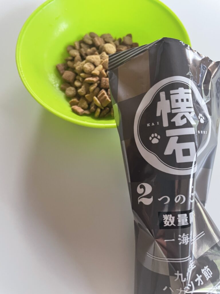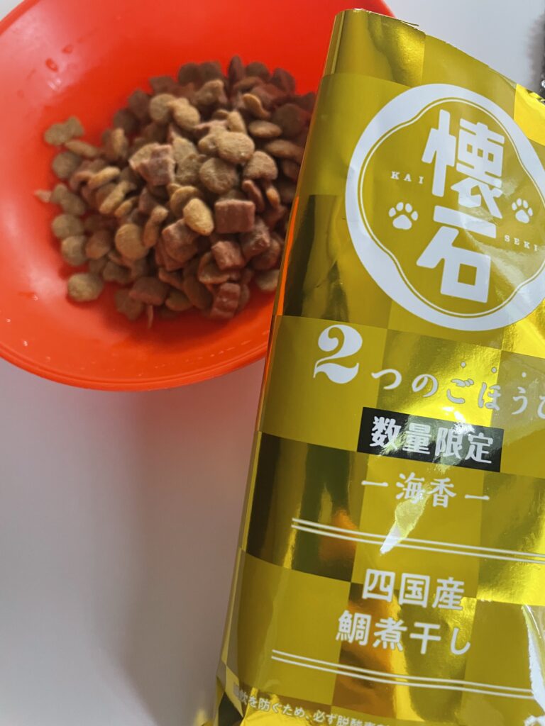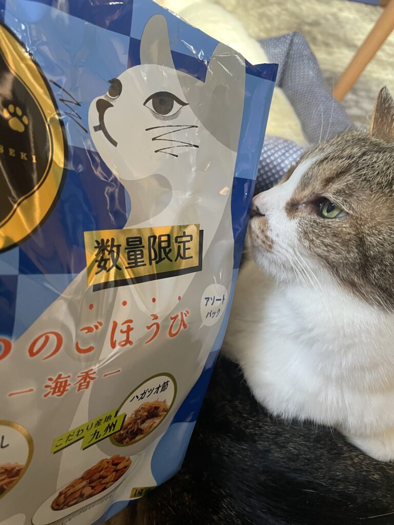 懐石シリーズはトッピングが猫的に魅力な様子で、どの種類をあげても食いつきの良さです。リニューアルした頃にオマケで「目印チャーム」とか「ピンバッジ」つきの時期があり、飼い主はそれに釣られたことがありました。(⇓あわせて読みたい参照)