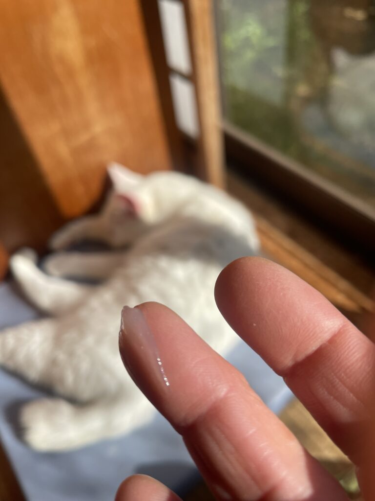完治までホントにあと少しですが、さらに良くなってますね!毎日寝込みを襲われながらも薬を塗らせてくれたおかげです。