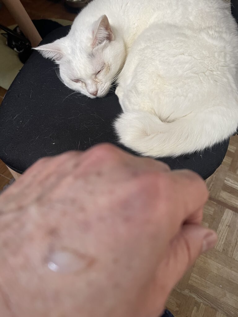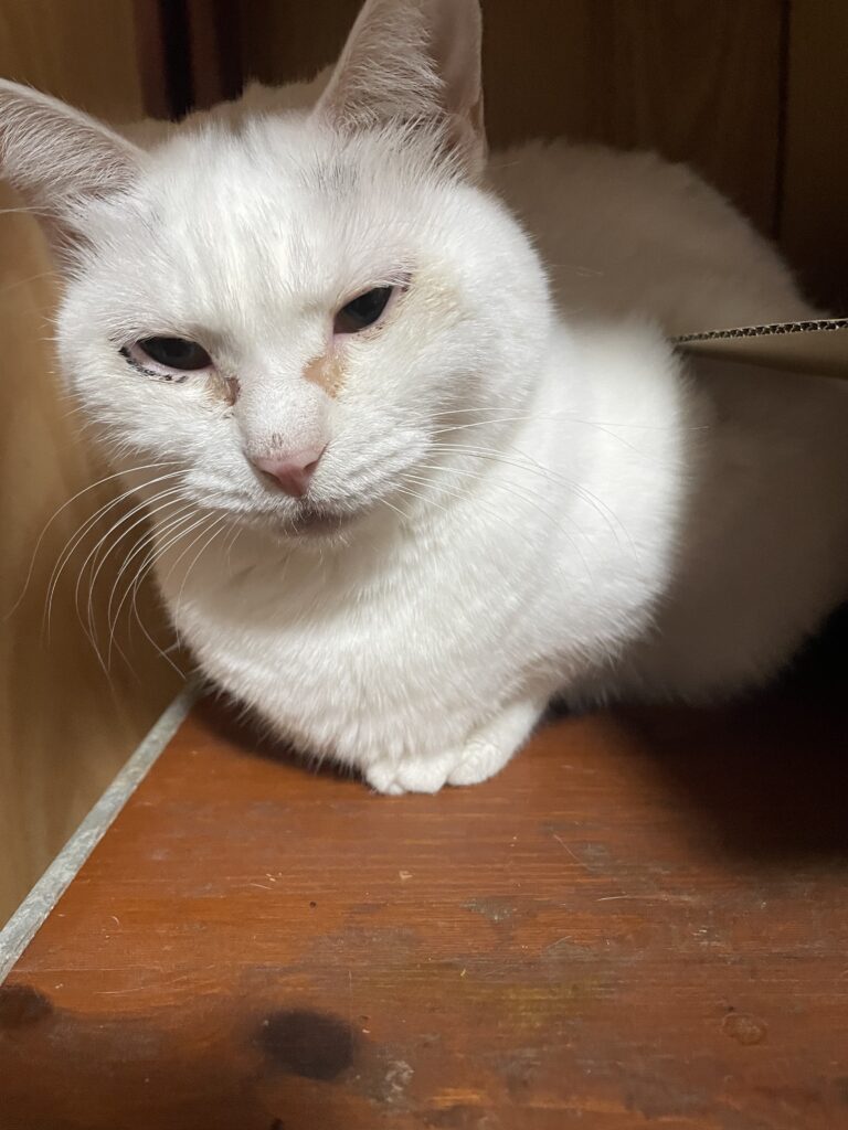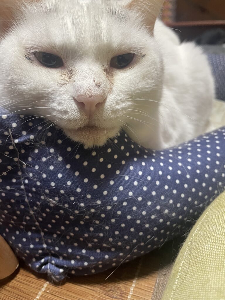 はっちゃんは保護した時は栄養不足で、ワクチン接種などを身体が丈夫になってから後回しにしたぐらいで、そもそもヘルペス持ちのようです。