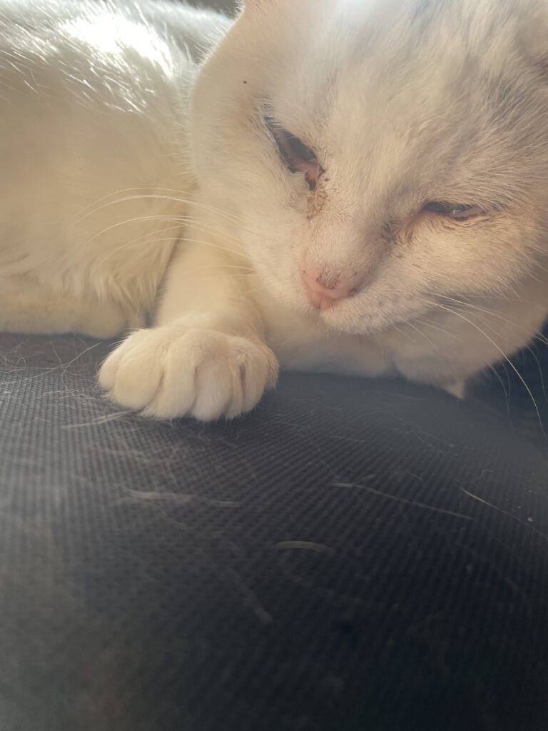 涙の量は減りました。でもまだちょっといつものおめめではないようです。量は少ないですが、液状の目ヤニが少しでます。完治まであと少し!といったところでしょうか。