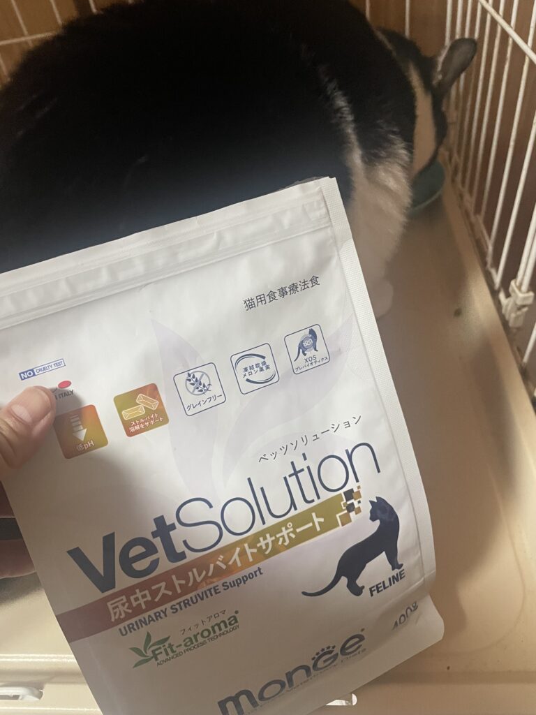 ぼくちゃんとのあるくんには療法食を買いました。ベッツソリューション、尿中ストルバイトサポート400g入りで1880円(税別)。