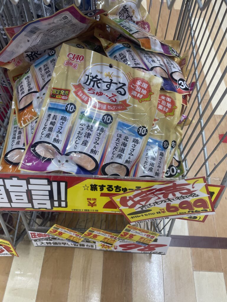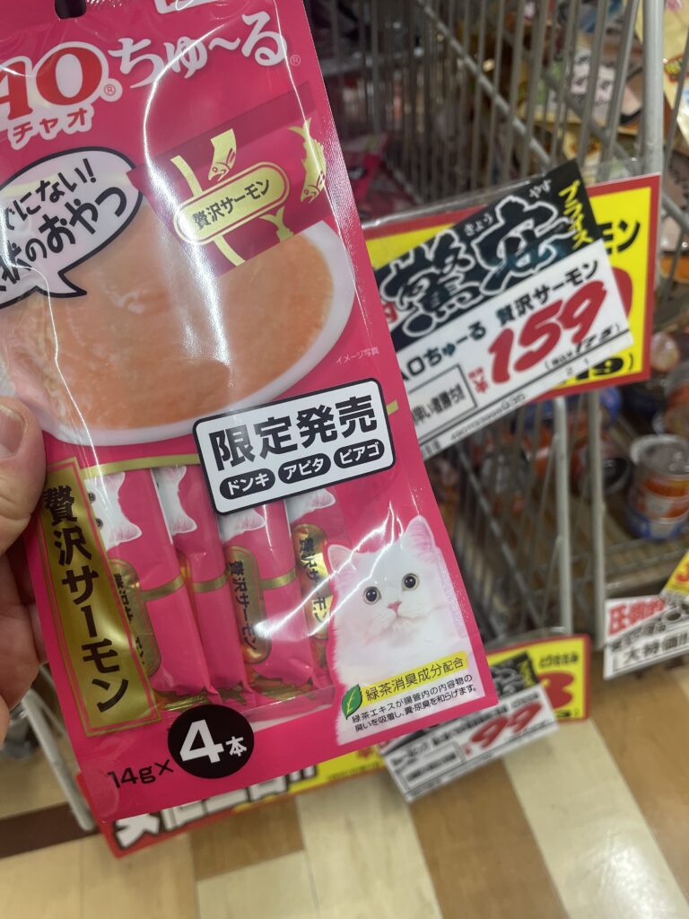 最近、爪切り用とかで使うため、ちゅーるのストック買いをしています。ありましたよ、ドンキとちゅーるの共同開発のお味が!