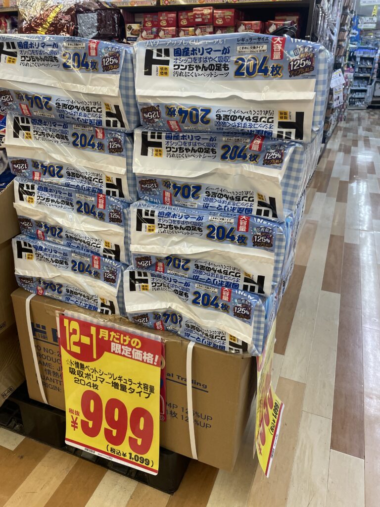 中でもペットシーツ999円は1月迄値下げなので、そのためにドンキに行ってもいいくらいの目玉商品だと思います!