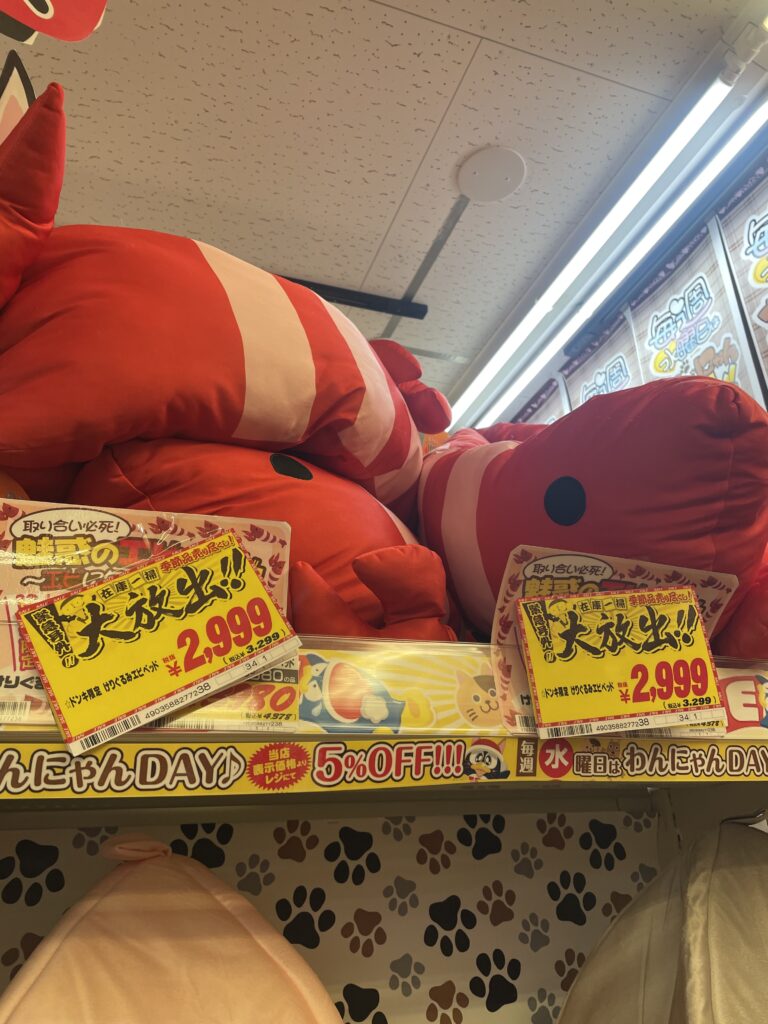 春、夏、秋を経て今、エビはサンタさんのお供をするトナカイさんになりました。私の目にはそう映ります。ドンキ浜町店のスタッフさんのセンスが光りますね。