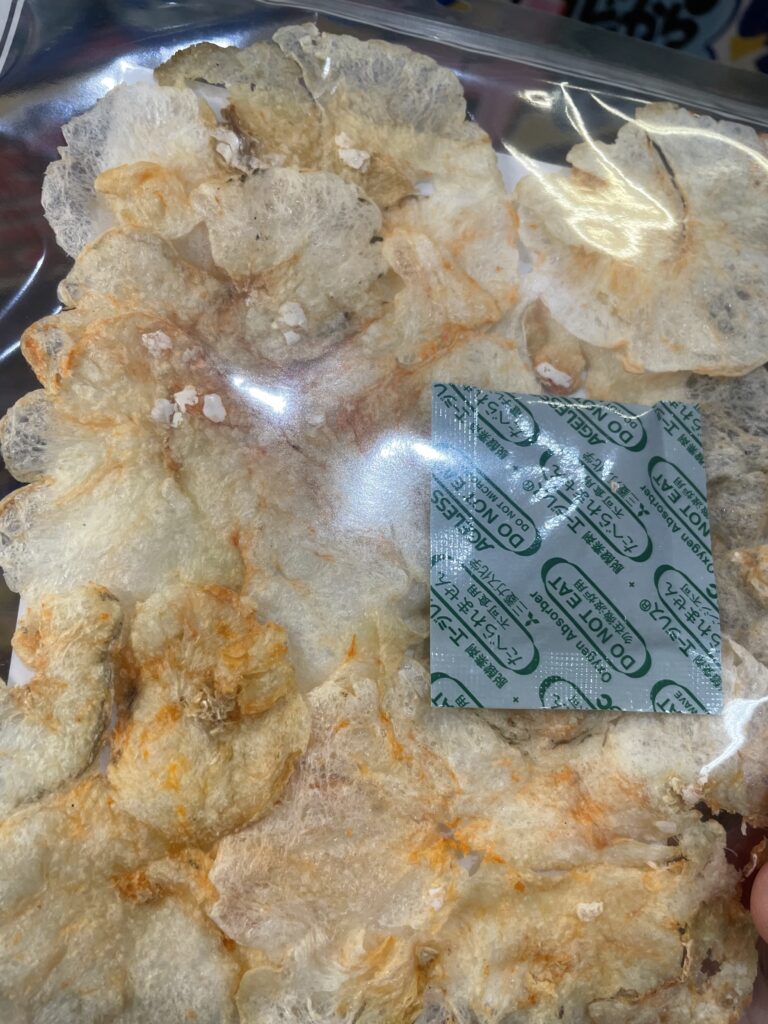 間違ってお父さんのお酒のおつまみに出しても違和感がなさそうな「うすやきえび」。添加物なしってところがいい感じですよね!8gで499円。お父さんのおつまみよりも高いかもしれません。
