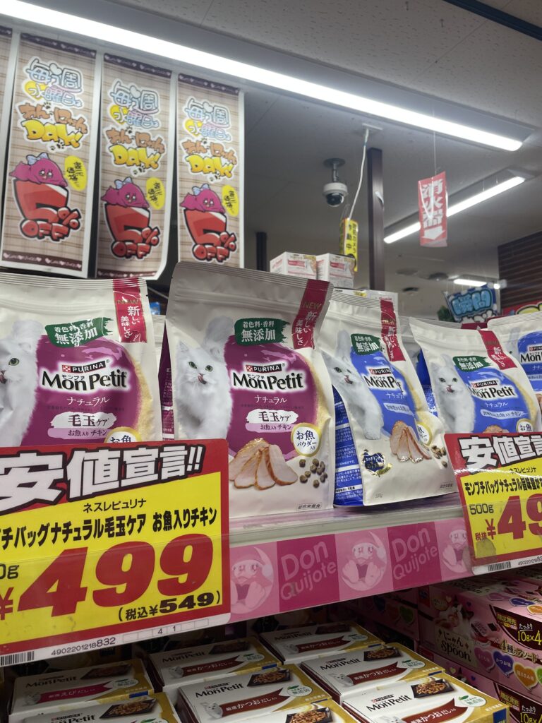 見境ない値上げの嵐で、もはやいつからこんな値段になってしまったのかわからなくなっているキャットフード業界です。500g入りモンプチ、安くなって499円です。通常価格がいくらだったっけ?と思い出せません。信頼できるドンキが安いよと言っているので、そのへんのスーパーで買うよりは絶対に安いと思います。