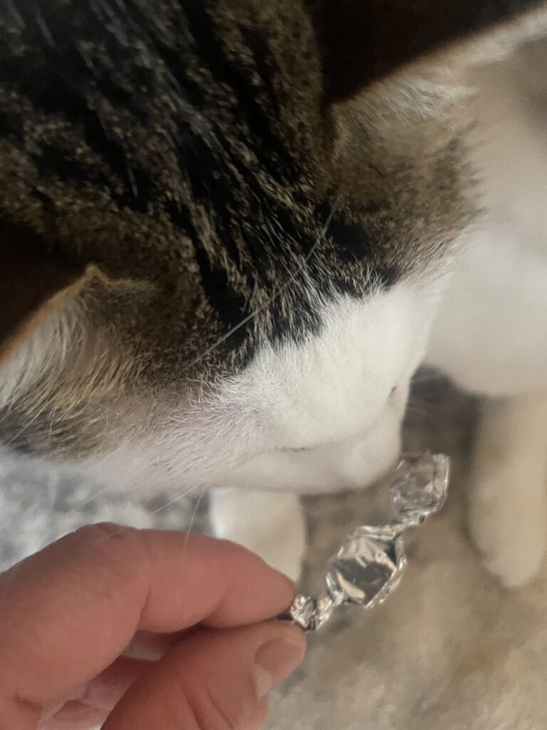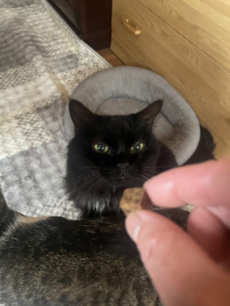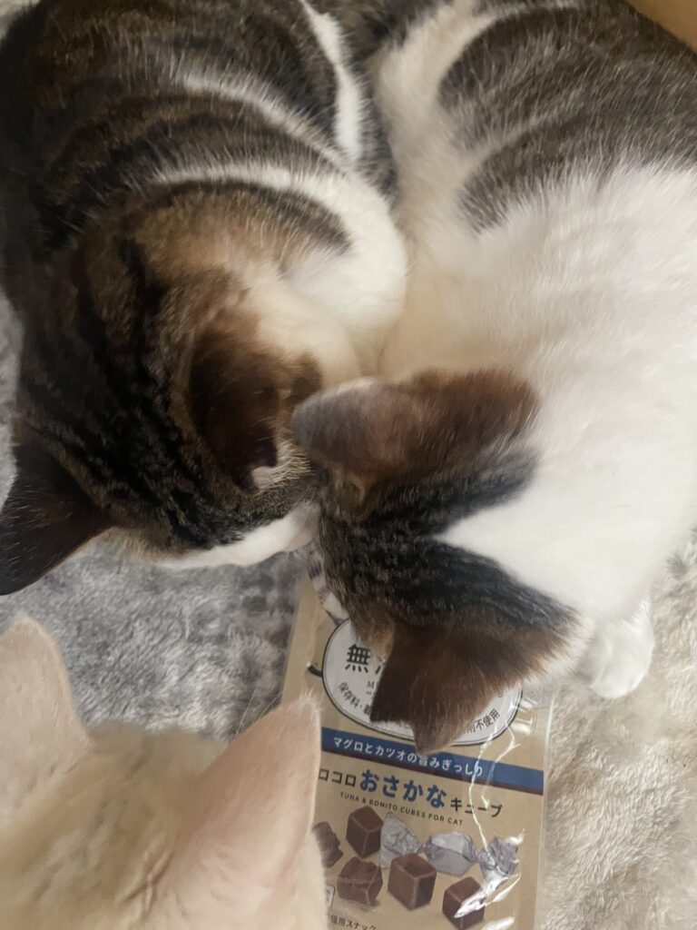 多頭飼いではない猫ちゃん家庭であれば問題はないと思います。しかし、欲しがる猫の中に爪がガン伸びしてる子がいると、爪を飼い主さんにブッ刺してでも欲しいアピールしてきますので、個包装もののオヤツは要注意です。