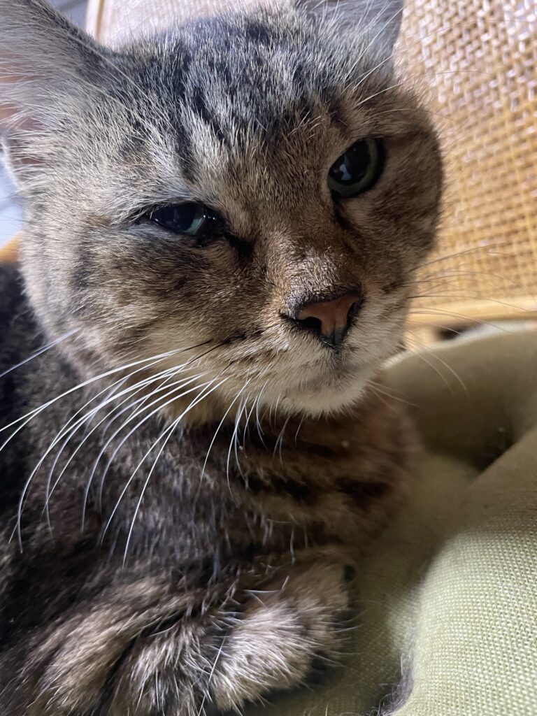 もしかしてまた同じような状態になることもあるかもしれませんので、油断はできないとも思います。しまちゃんはニャーニャと同じくらいのシニアさん。野良出身なので推定ですが16歳くらい。